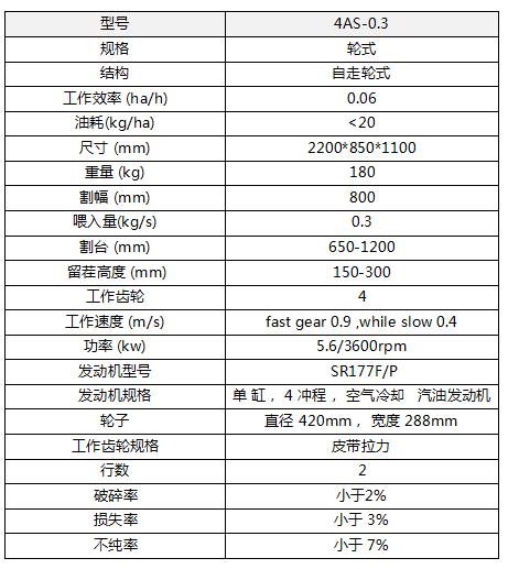 小型小麥收割機,配套動力為7.6馬力,割幅為800mm.