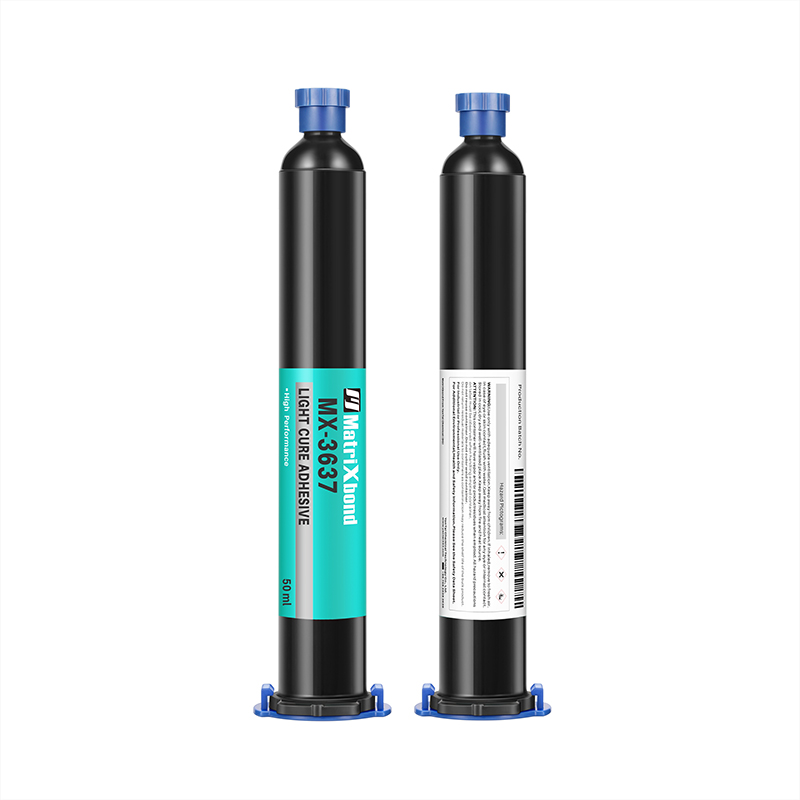 MX-3637是一種單組份、紫外光固化、低氣味型丙烯酸酯類膠粘劑。擠出性好、固化速度快、透明度高、韌性好、耐候性好。用于電子元器件的固定與披覆而設計。電子器件焊點固定、補強、保護。